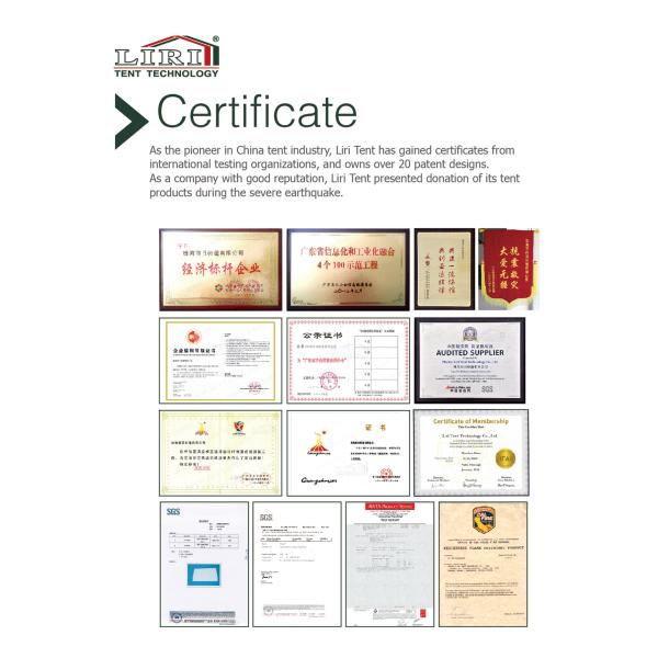 3) The most reliable tent supplier. Exported to over 80 countries, and maintaining excellent reputation,